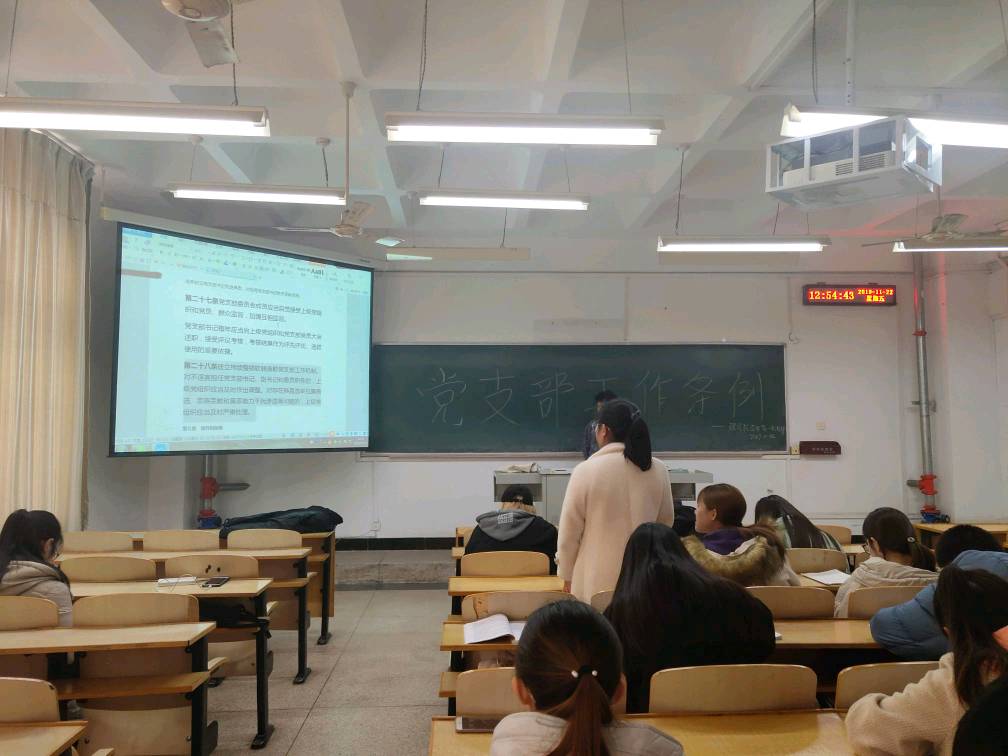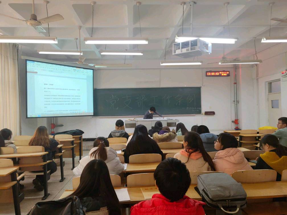 11月22日,太阳集团tyc539学生第一党支部全体党员在文馨书院C111展开《中国共产党支部工作条例》中的党支部职责专题学习。