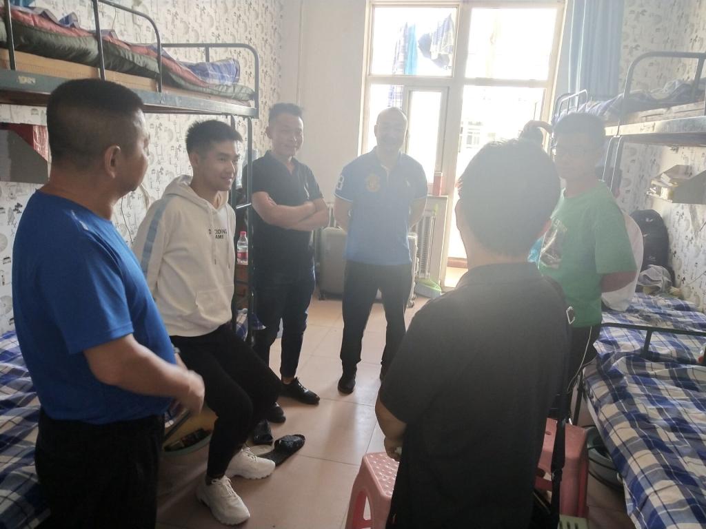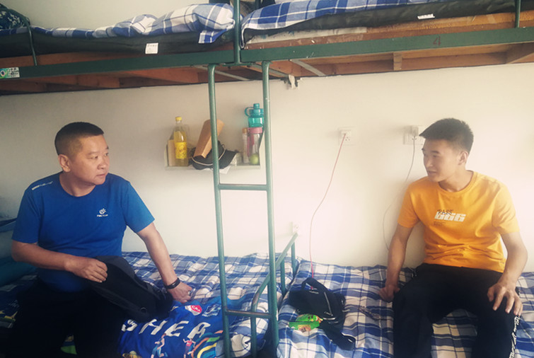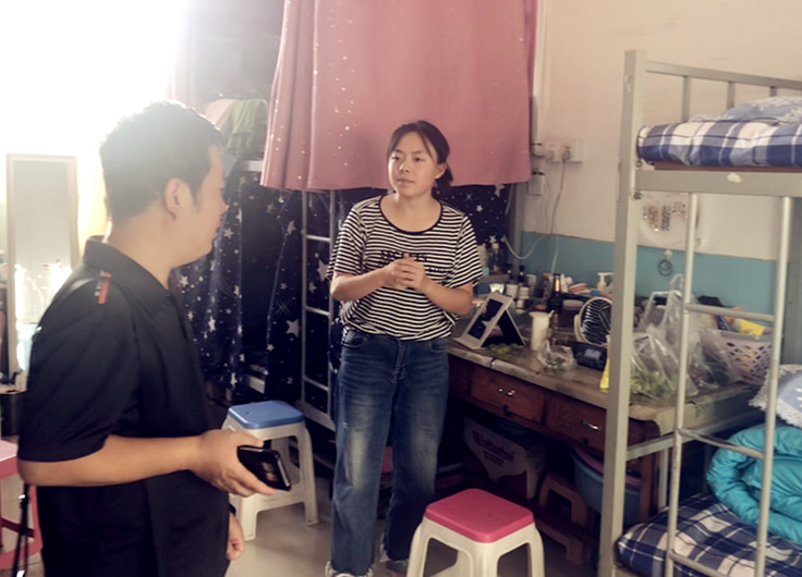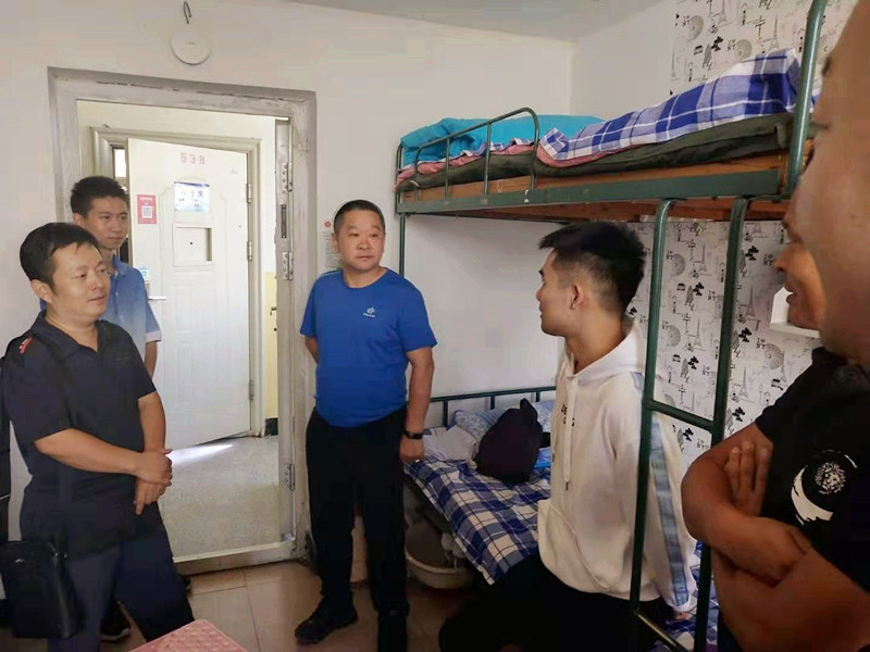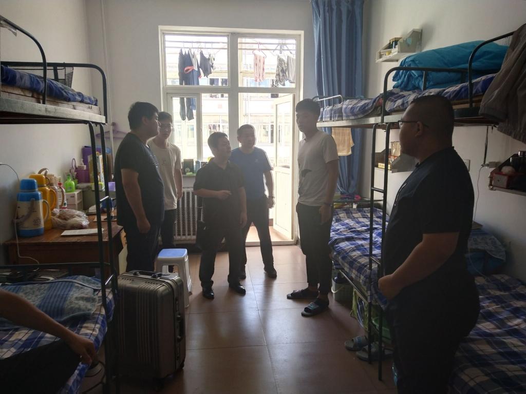 在新生宿舍,学院领导与学生及部分学生家长亲切交谈,询问大家来自哪里,入学报到是否顺利,是否适应学校的环境等事情,并仔细的检查了新生宿舍设施安全,对宿舍安全隐患排查,提醒学生注意上下铺安全,防骗防盗、拒绝推销等问题。