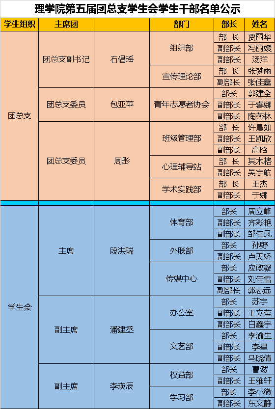 我院2020-2021年团总支学生会学生干部名单公示