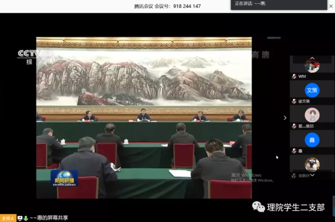 4月23日上午,学生第二党支部通过线上视频会议的形式组织观看了关于“习近平总书记扶贫工作论述精神”的视频。参加本次视频会议的有教师党员2名(包文明、罗婵),学生党员7名(张惠、秦渊、段东伟、朱明亮、徐文策、庄晓旭、李科曼),预备党员5名(盖鹏祥、刘博文、宿淑晶、梁斌、何鑫鑫),大家积极响应号召,准时参加会议。