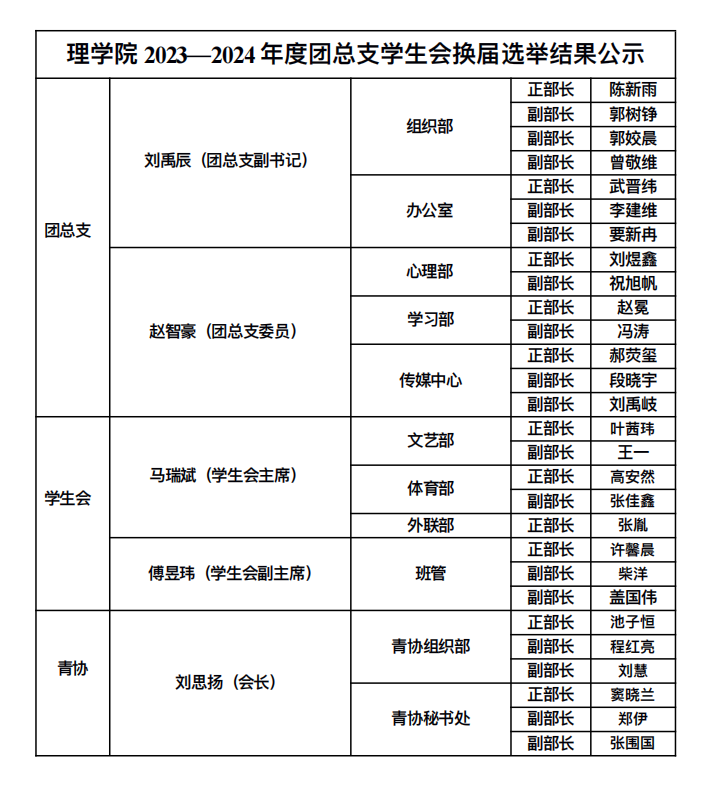 以上结果公示期为2023年6月29日——7月5日,公示期内,如有意见和建议,请向学院团总支反映。