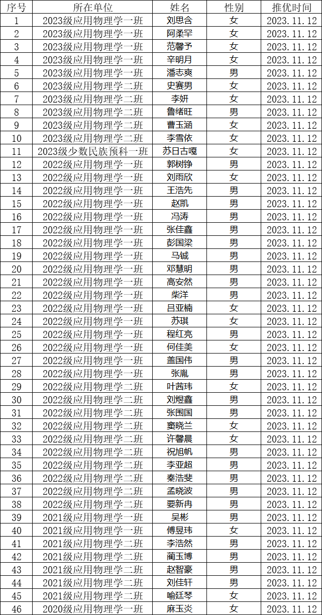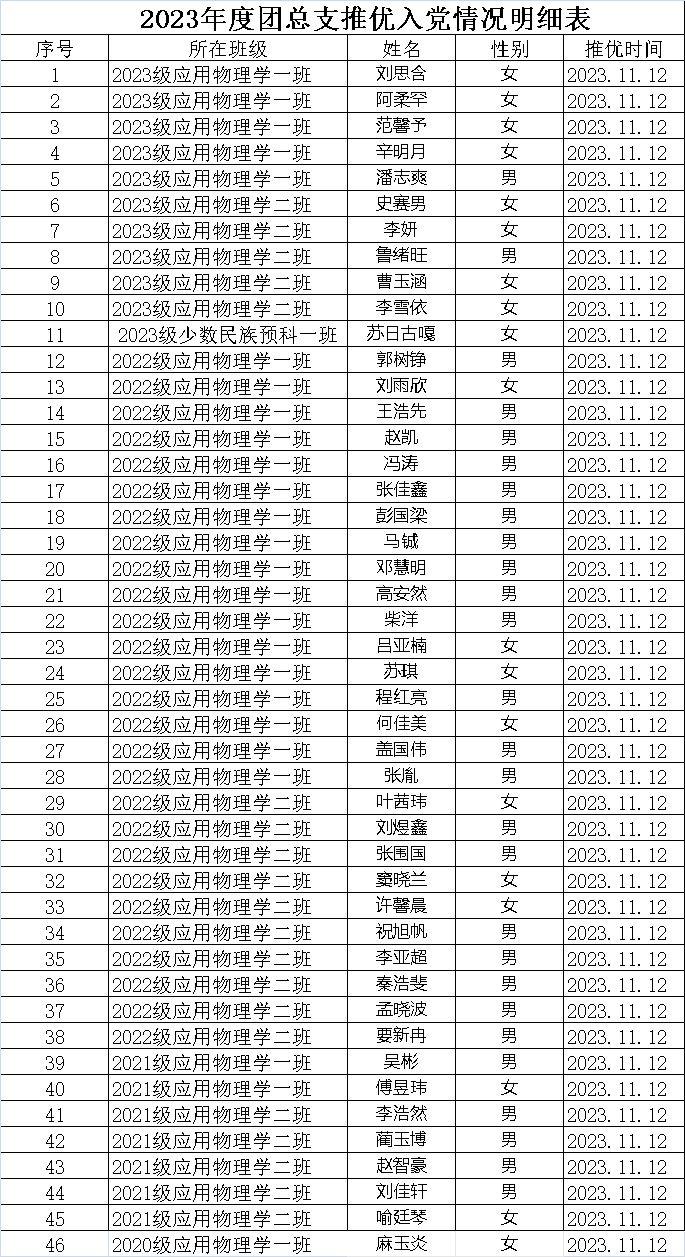 根据《太阳成集团tyc539推荐优秀团员作为入党积极分子工作的实施细则》文件相关规定,经个人申报、班主任,团支书审核、团支部开展民主会议、团总支最终审核决定,拟推荐刘思含等46名同学为太阳集团tyc5392023——2024年第一学期推荐优秀团员为入党积极分子,公示日期截止11月15日晚20:00。