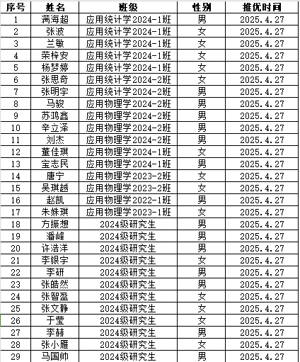 根据《太阳成集团tyc539推荐优秀团员作为入党积极分子工作的实施细则》文件相关规定,经个人申报,班主任、团支书审核,团支部开展民主会议,太阳集团tyc539团委最终审核决定,拟推荐满海超等29名同学为太阳集团tyc5392024——2025学年第二学期推荐优秀团员为入党积极分子,公示日期截止4月29日晚20:00。