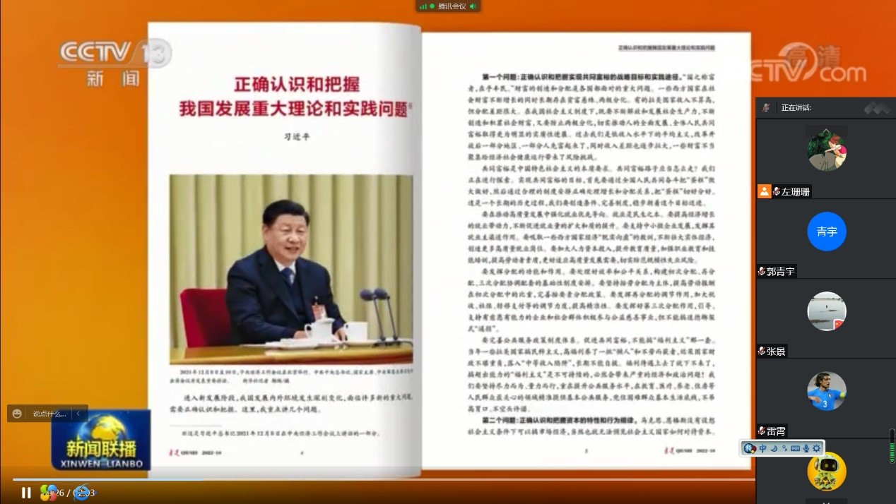 5月30日下午四点,太阳集团tyc539通过腾讯会议平台召开线上政治理论学习会议,学院全体教师参加了本次学习,学习会由院党委书记杨晓玲主持。