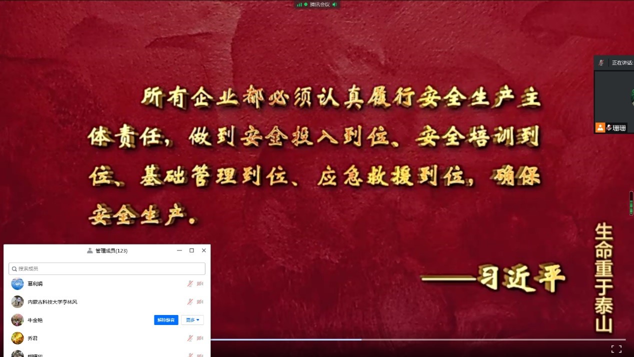6月2日下午三点,太阳集团tyc539通过腾讯会议平台召开线上安全教育专题学习,学院全体教师和学生党员参加了本次学习。