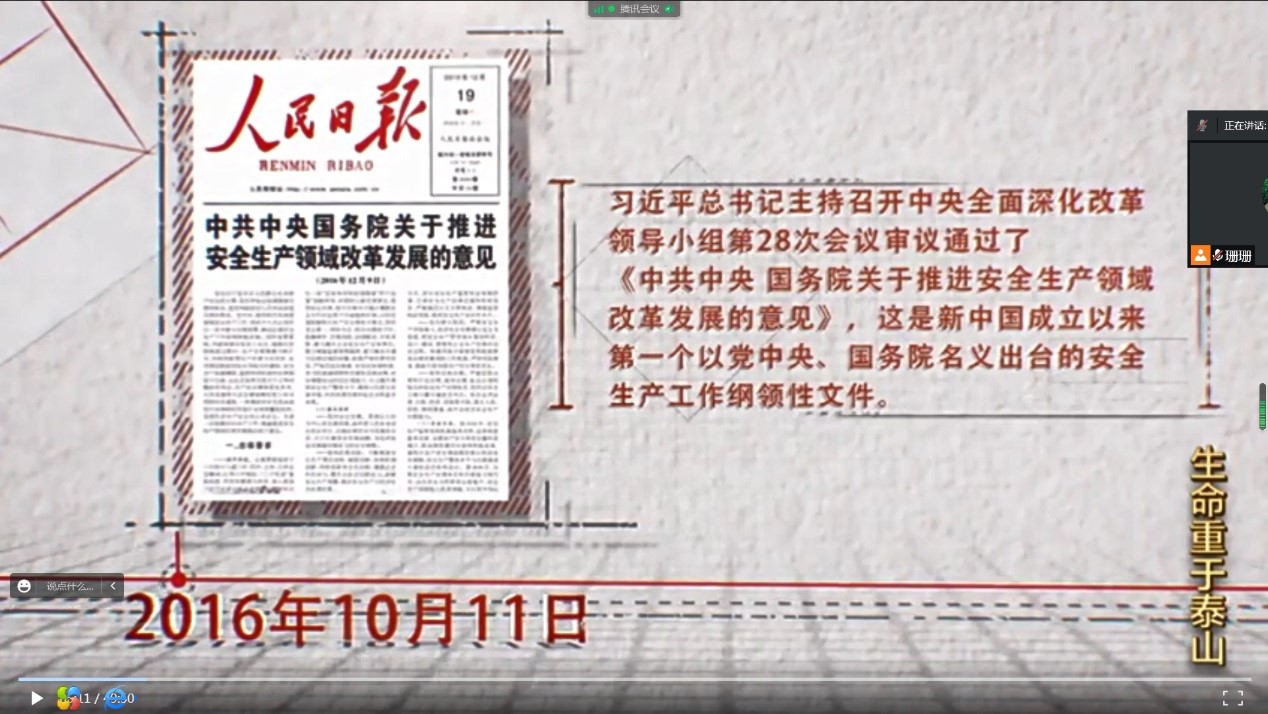 会议通过视频的形式学习了《生命重于泰山》的电视专题片,专题片围绕安全生产的重要性,全面阐述安全生产重要论述,系统解读安全发展、严守底线、强化责任、依法治理、改革创新、夯实基础、严抓落实等重要内容。专题片一再强调生命重于泰山,要求各单位务必把安全生产摆在重要位置,拿出更多针对性、操作性强的举措,坚决遏制重特大事故发生。