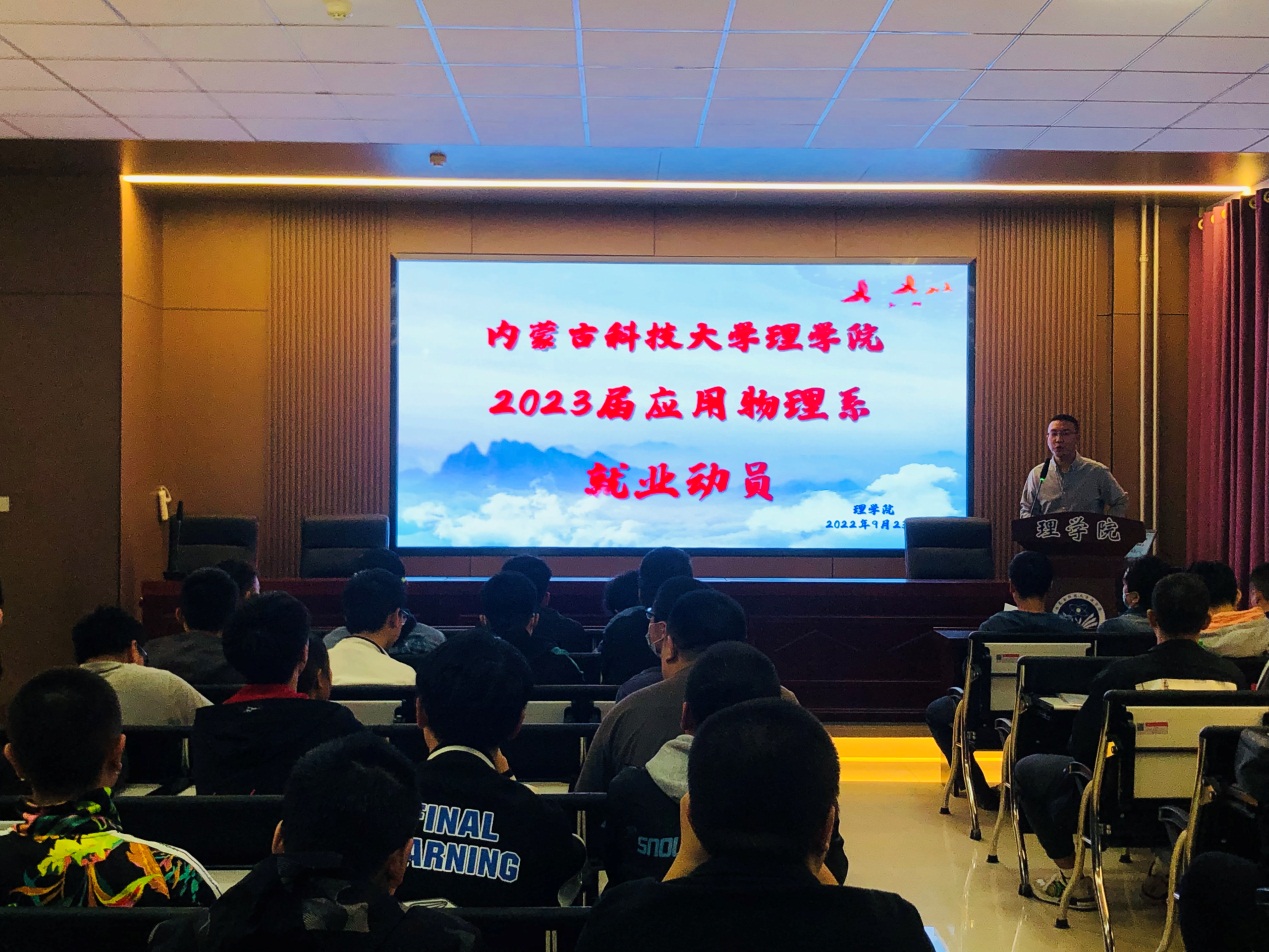 为进一步增强毕业生就业意识,引导毕业生了解就业形势,树立正确的就业观和择业观,我院于9月22日晚间召开了2023届应用物理学毕业生就业动员大会。会议由应用物理学专业系部主任贺帅老师主持,太阳集团tyc539党委副书记、副院长罗宁、全体毕业班班主任、2018届毕业班班主任、辅导员、2023届全体物理专业毕业生参会。