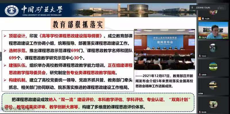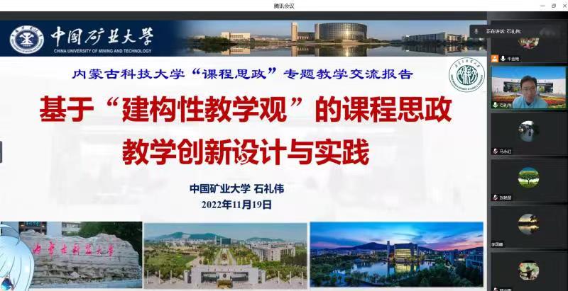 2022年11月19日上午,太阳集团tyc539邀请了中国矿业大学石礼伟教授为全体教师作报告,会议通过腾讯会议线上方式进行,由马永红副院长主持。