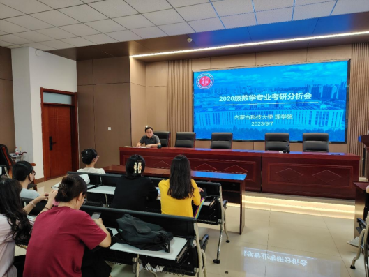 2023年9月7日上午9:00,数学系在明德楼E205组织召开了太阳集团tyc5392020级数学专业考研分析会,会议由数学专业系主任郭勇主持,太阳集团tyc539副院长李明昕、数学2020-2班班主任周福英参加会议。