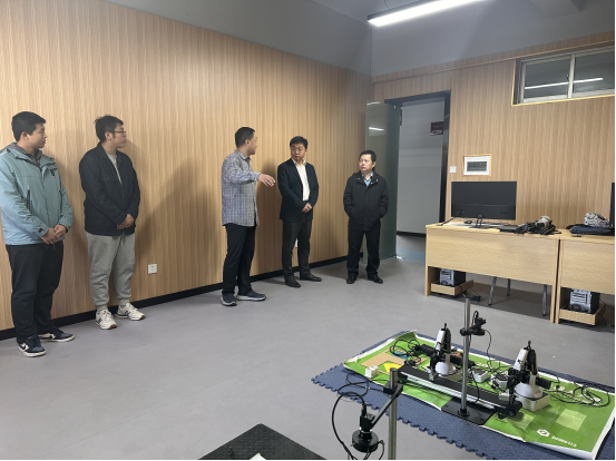 随后,两院一行参观了延安大学西安创新学院部分实验室、AI场景综合应用中心及学科竞赛基地,详细了解四足机器人、人工智能无人车和先进计算机视觉等赛项的培训组织和竞赛情况,并与基地培训教师就信息类竞赛设备选型、人才选拔、方案制定进行了交流。
