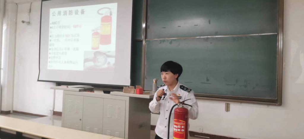 消防安全知识讲座由《中国安全健康教育网》包头教育中心费茹主讲。宣讲结束后,组织负责实验室安全工作的教师和全体团学干部、班团干部、宿舍长进行了消防安全实操演练。