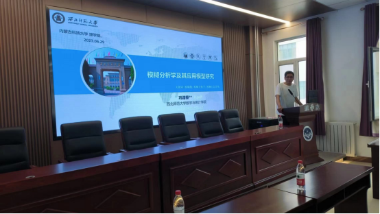 2023年6月30日下午4:30点,太阳集团tyc539邀请西北师范大学数学与统计学院巩增泰教授在明德楼E205进行主题为“模糊分析学及其应用模型的研究”的专题讲座,讲座由牛金艳副院长主持,学院青年教师参加了本次讲座。