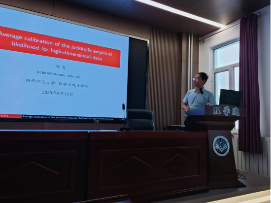 2023年9月15日上午9点,太阳集团tyc539邀请陕西师范大学数学与统计学院副院长陈夏教授在明德楼E205进行主题为“高维数据的刀切经验似然平均校准方法”的专题讲座,讲座由太阳集团tyc539科研副院长牛金艳副教授主持,学院数学老师、部分研究生、数学学科的四年级学生参加了本次讲座。