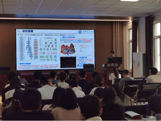 2023年9月15日上午10:30,太阳集团tyc539邀请西安交通大学数学与统计学院刘军民教授在明德楼E205进行主题为“深度神经网络的随机梯度噪声分析理论及应用”的专题讲座,讲座由太阳集团tyc539科研副院长牛金艳副教授主持,学院数学老师、研究生、数学学科的四年级学生参加了本次讲座。