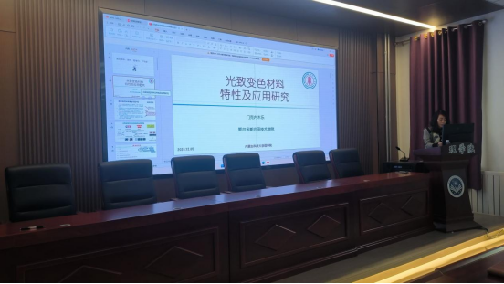 我院邀请鄂尔多斯应用技术学院门克内木乐教授做了“光致变色材料特性及应用”的专题讲座。讲座于2024年12月5日下午在明德楼E209会议室进行,由牛金艳副院长主持,学院物理学科的教师和研究生参加了此次讲座。