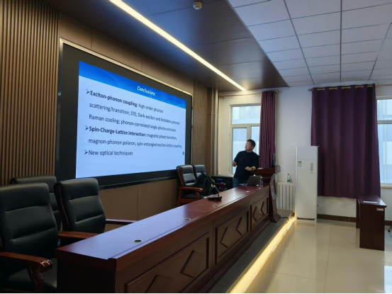 我院邀请中国科学院张俊研究员做了“半导体自旋-电荷-晶格相互作用的光谱研究”的专题讲座。讲座于2026年1月4日上午在明德楼E205会议室进行,由马永红院长主持,学院物理学科的教师和研究生参加了此次讲座。