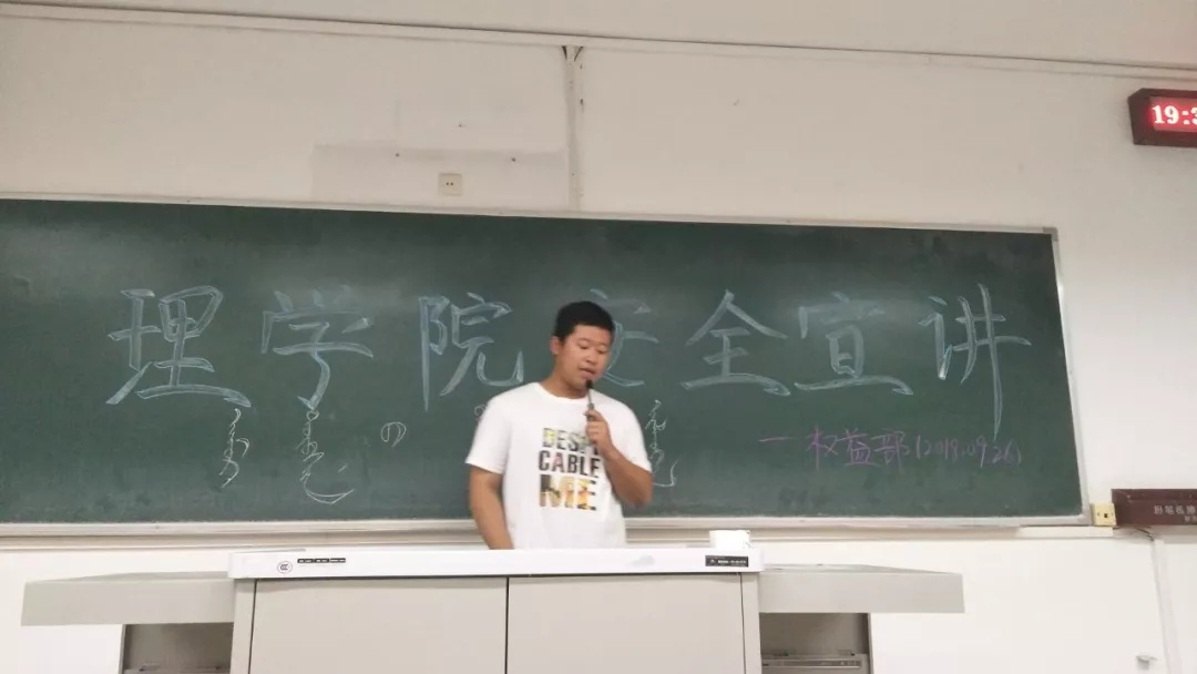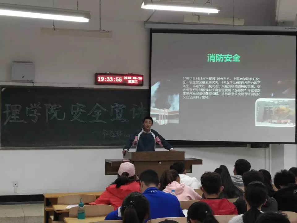 为加强广大学生的自我保护意识,防范社会不法分子的侵害,9月26日晚学生会权益部在大一及预科班的晚自习教室举办了“安全宣讲”活动。