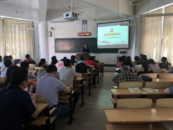 5月30日下午14:30,在二教C113教室,我院党总支组织开展《学习以党的十九大精神为引领提升意识形态能力专题》。由学院党总支书记杨晓玲同志讲授,学院全体教职工参加学习。