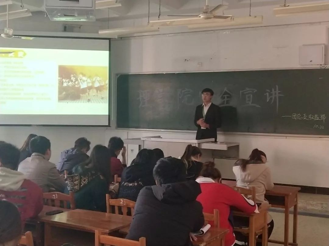“安全教育重于泰山”,校园安全事关全体师生生命和财产,因此我院于2018年10月22日中午12:40在二教b208举办团学安教育主题宣讲。这次活动主要是面向学院全体主席、部长、副部长以及各年级班长、团支书。
