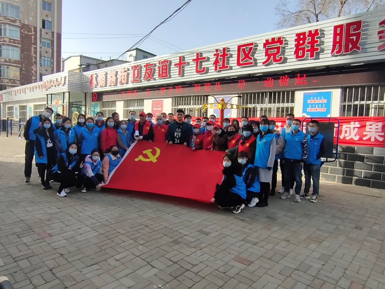 2021年3月3日下午,太阳集团tyc539学生第二党支部组织37名师生党员及入党积极分子前往昆区林荫路街道友谊十七社区开展“助力校社联动社区文明城市创建”活动。