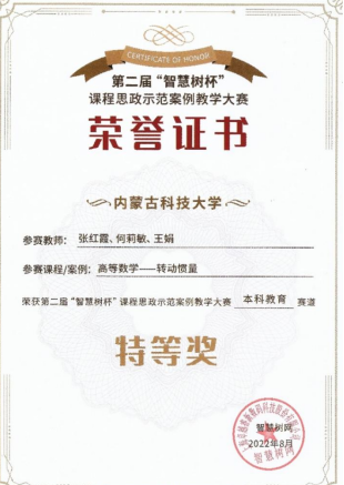 在近日落下帷幕的首届“智慧树杯”混合式教学案例创新大赛中,我院张红霞、何莉敏、王娟三位老师组成的高等数学混合式教学创新团队报送的参赛案例经过初赛和复赛两轮评选斩获殊荣,获得本科赛道一等奖。